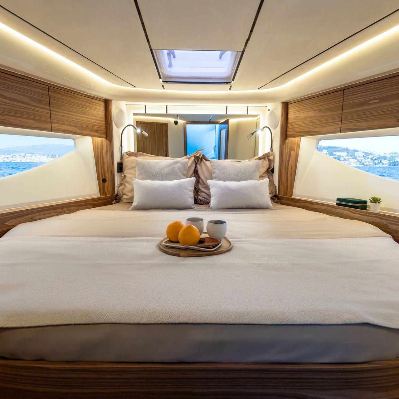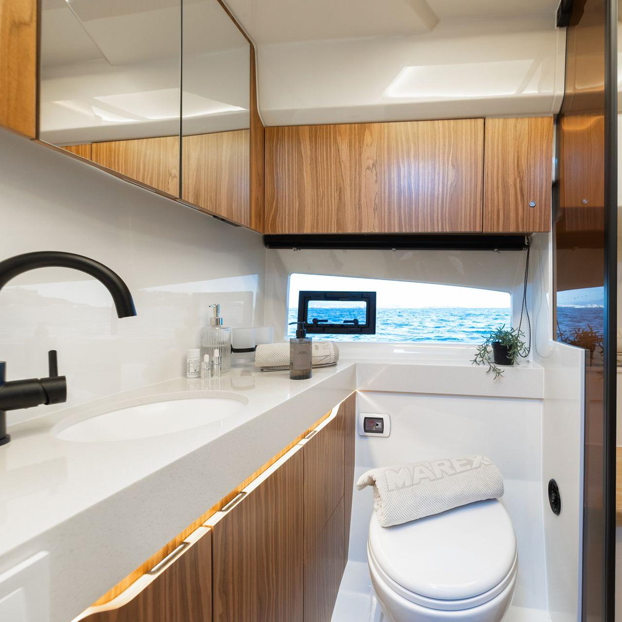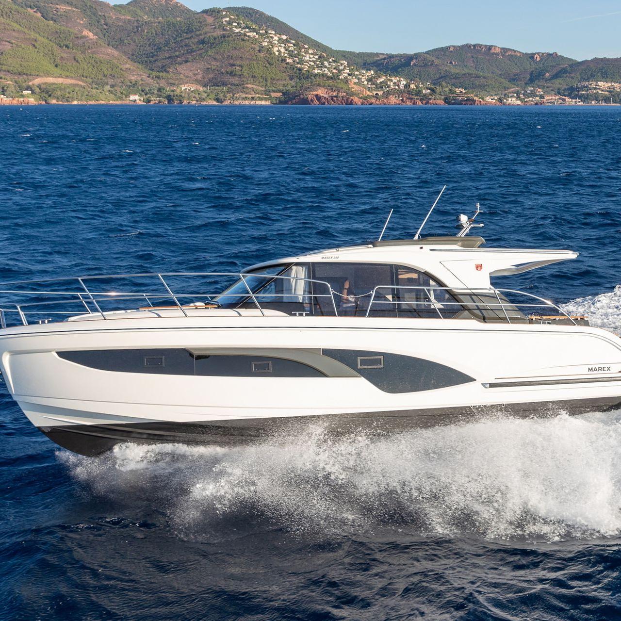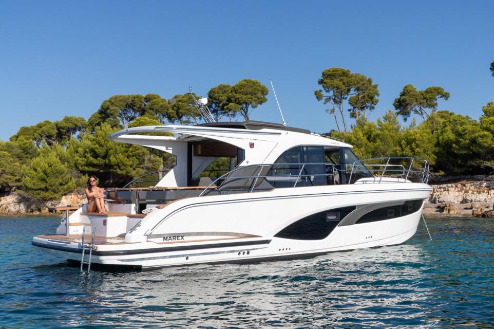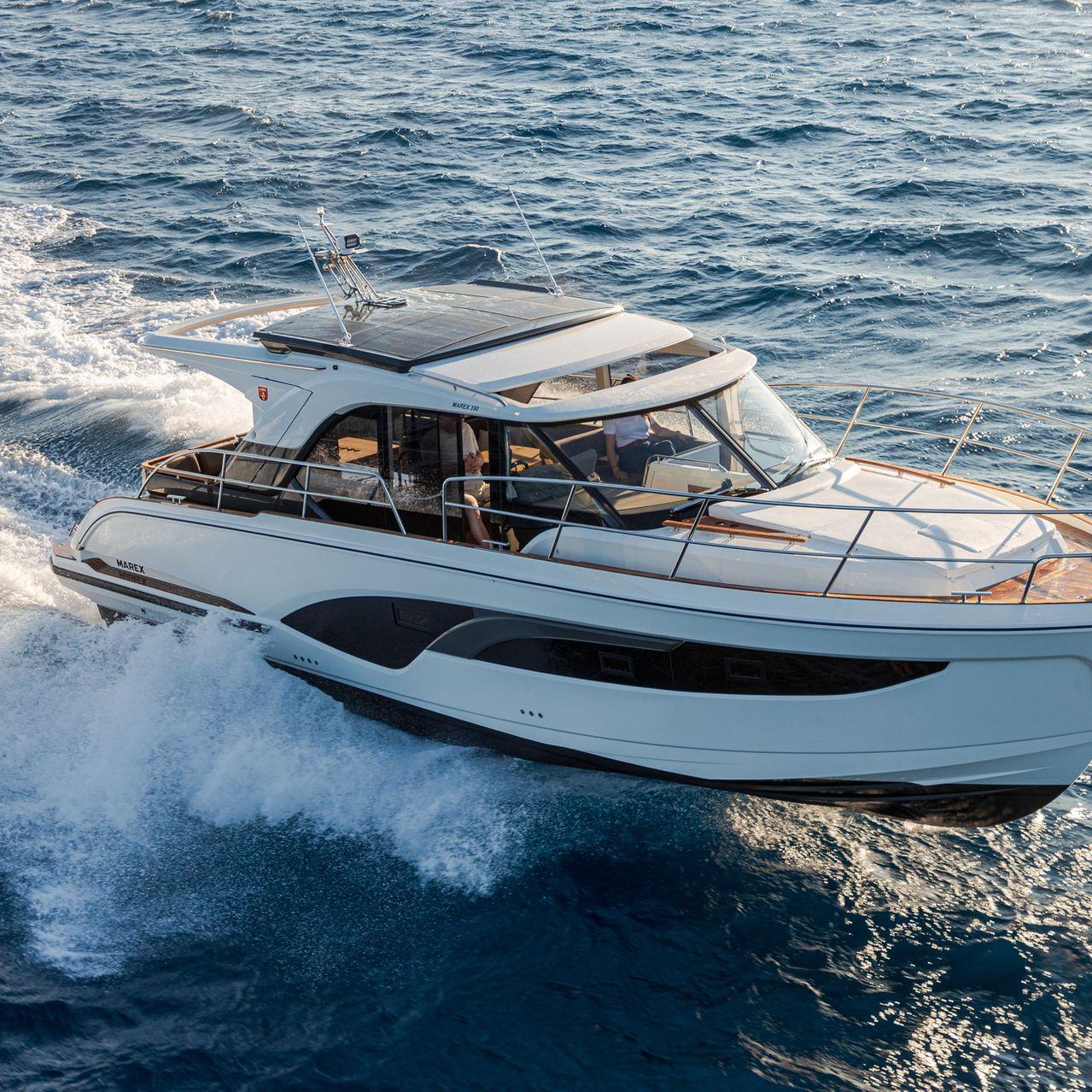 Premium GRP construction, stainless hardware, spacious cabins, high-quality joinery, solar power option and practical details reflect Marex’s Scandinavian build ethos